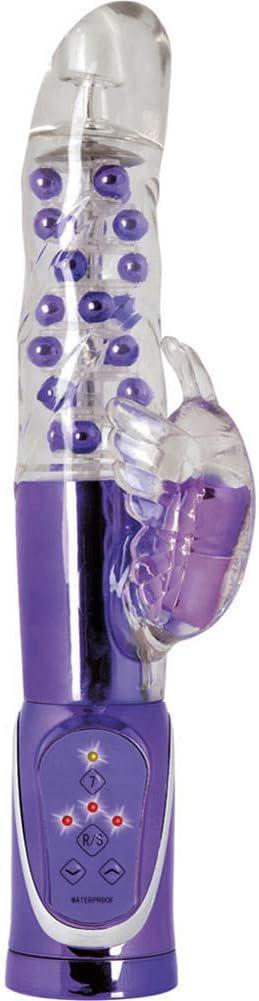 Rabbit-style vibrator that combines different sensations and is designed to maximize your pleasure. Experience the multiple speeds of its rotating head, which is easy to insert thanks to its ergonomic shape and stays firmly in the G-spot area. Its 7 columns of rotating pearls will massage the vagina through rotation, while the butterfly wings transmit powerful vibrations to the clitoris. Control the 3 rotation speeds and 7 pulsation and escalation vibration functions through the easy-to-access and use control knob located on the base.