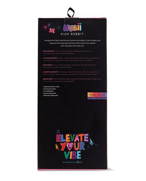 Joining Nu Sensuelle’s Nubii collection is Kiah–a versatile rabbit vibe powered by two Nubii motors that allow users in their exploratory stage to purchase a luxury rabbit vibe at a more attractive price. Designed for novice and advanced users alike, this dual-stim rabbit enables users to grow and explore new forms of pleasure–like turbo boost, temperature play, and ribbed texture–at their own pace. Each of Kiah’s functions operates independently if users wish to explore them one at a time. Once the user feels comfortable, they can layer all of Kiah’s functions simultaneously, allowing them to customize their experience and discover which intensity levels suit their needs. Kiah redefines the way we envision affordable power. Two Year Warranty.