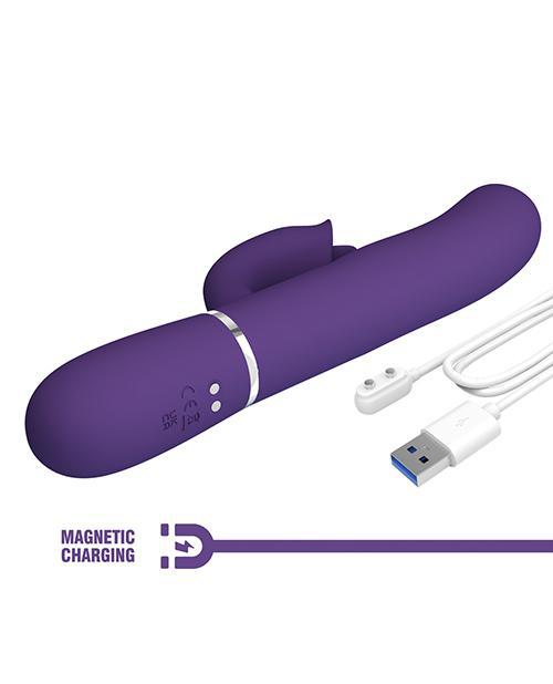 Designed for maximum pleasure, stay in bed with the Pretty Love Rabbit Vibrator. The vibrator is with 7 thumping settings on both points in the shaft and 7 licking setting in the clitoris stimulator! All these functions can work together to delight two hot spots at once! Sink on to smooth stimulation with silicone coating for a fully waterproof experience so you can get hot and bothered in and out of the bedroom. Plus, it's always ready to go with magnetic USB charging. For enhanced pleasure, press the Burst Climax Button to explore your incredible and earth-shattering orgasms.